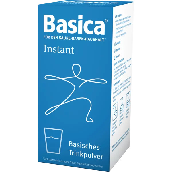 Basica® Instant bázikus italpor – Ásványi anyagok bázikus sóit és nyomelemeket és C-vitamint tartalmazó, azonnal oldódó, narancsízú étrend-kiegészítő italpor.