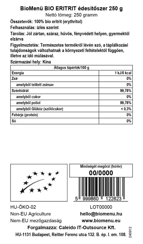 BioMenü BIO ERITRIT édesítőszer 250 g