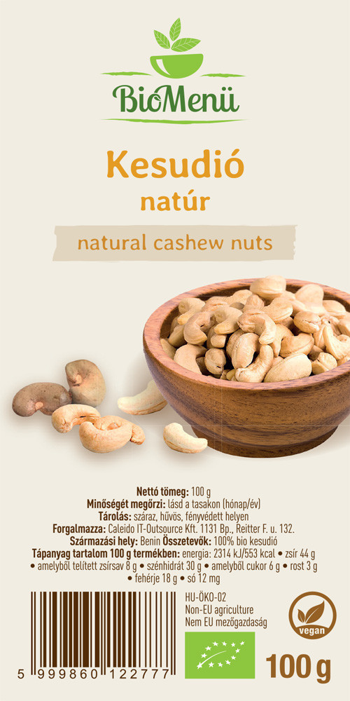100% bio kesudió (anacardium occidentale); Allergének: nyomokban más dióféléket is tartalmazhat