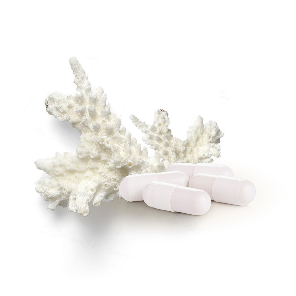 kalcium korallhomokpor; térfogatnövelő szer: mikrokristályos cellulóz; csomósodást gátló anyag: zsírsavak magnézium sói; kapszulahéj: hidroxipropil-metil-cellulóz