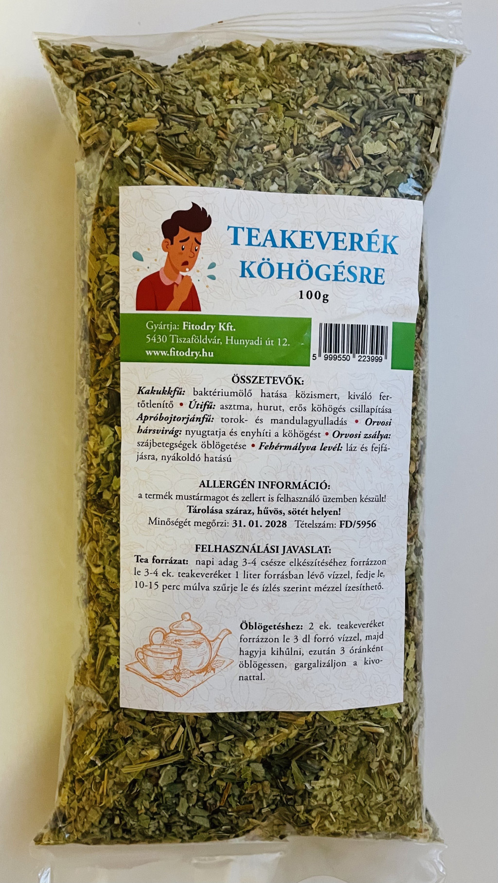 Összetevők: kakukkfű, útifű, apróbojtorjánfű, orvosi hársvirág, orvosi zsálya, fehérmályva levél
