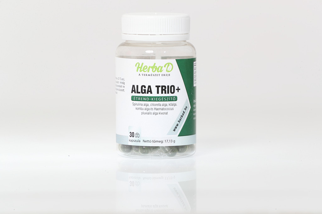 Összetevők: Spirulina alga kivonat, chlorella alga kivonat, kombu alga (Aminaria japonica) kivonat, kőalga (Lithothamnium Coralloides) kivonat, HPMC (kapszula anyaga), Haematococcus pluvialis alga kivonat.