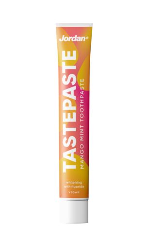 A Jordan Tastepaste Mangó egy enyhe ízű fogkrém a mangó és a menta izgalmas ízkombinációjával. A fogkrém fehérítő hatással és természetesen zománcvédelemmel rendelkezik. 100% vegán és természetes színezéket tartalmaz.