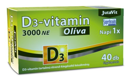 JutaVit D3-vitamin 3000NE (75µg) Olíva 40 db-os D3-vitamin tartalmú étrend-kiegészítő készítmény.