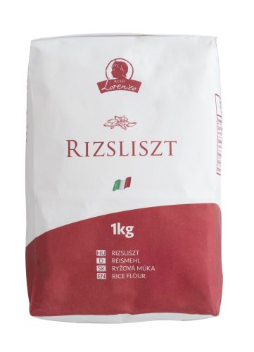 Rizsliszt. Energia1489 KJ Fehérje 7 g Zsír 1,1g (telített 0,5g telítetlen 0,2g) Szénhidrát 79g Só 0,1mg Rost 1g