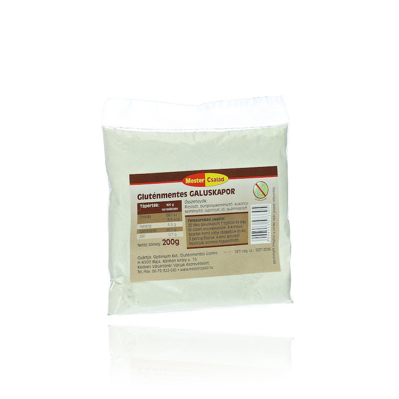 Összetevők: rizsliszt, burgonyakeményítő, kukoricakeményítő, kölesliszt, sürítőanyag (guárgumi), só.