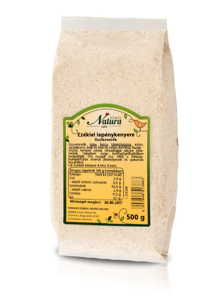 NATURA EZÉKIEL LISZT Összetevők: teljes kiőrlésű búza, -árpa, -tönköly, -bab, -lencse és kölesliszt.