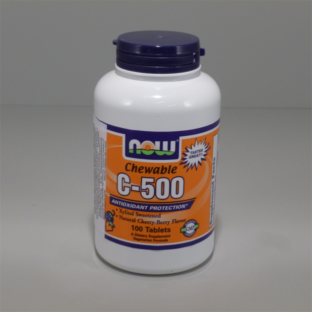 NOW C-500 CSERESZNYE ÍZŰ RÁGÓTABLETTA Kellemes ízű, szétrágható, vadcseresznye ízesítésű 500 mg-os C-vitamin rágótabletta.