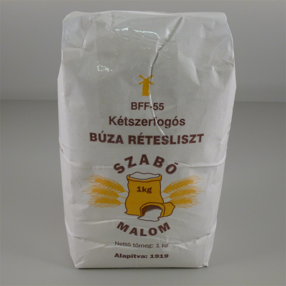 SZABÓ MALOM BÚZA RÉTESLISZT BFF-55 Durvábban szemcsézett búza rétesliszt. Kiválóan alkalmas finom házi sütemények készítéséhez, galuska, túrógombóc stb. készítéséhez.