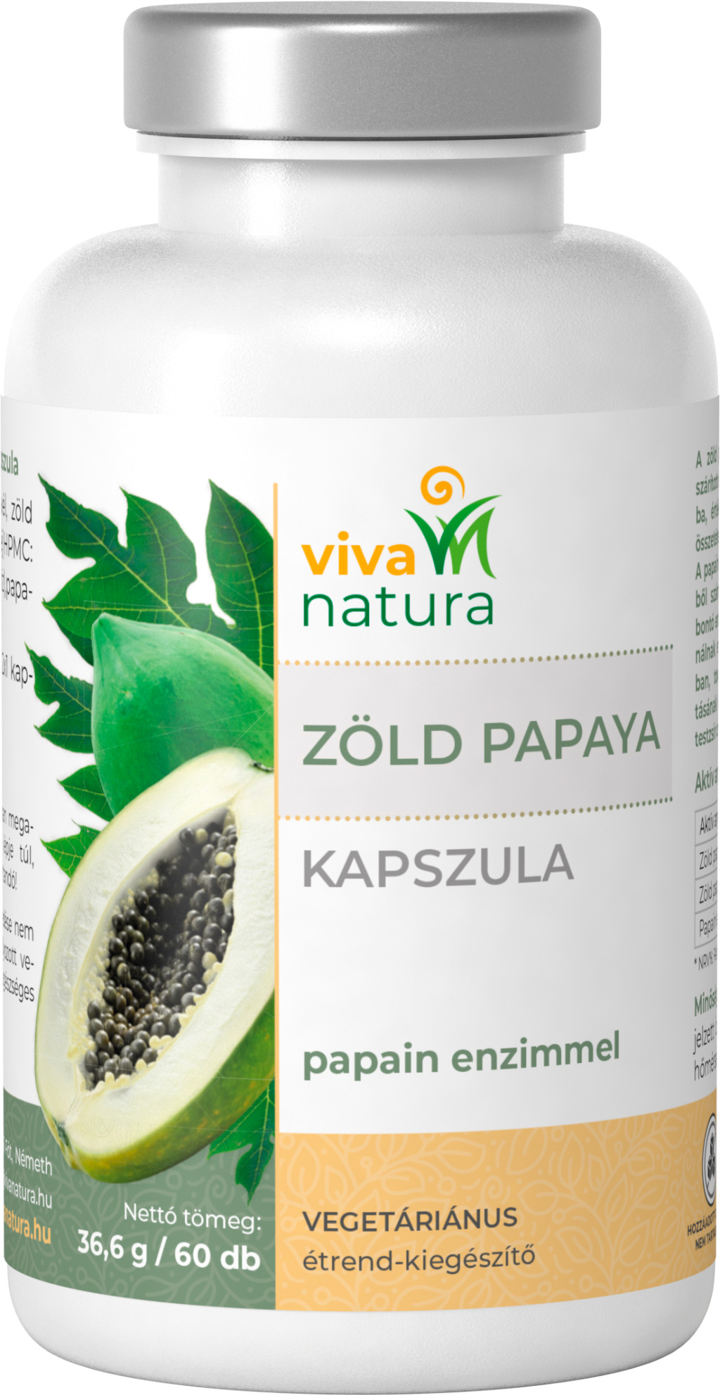 Viva Natura – Zöld Papaya papain enzimmel kapszula VEGETÁRIÁNUS étrend-kiegészítő
