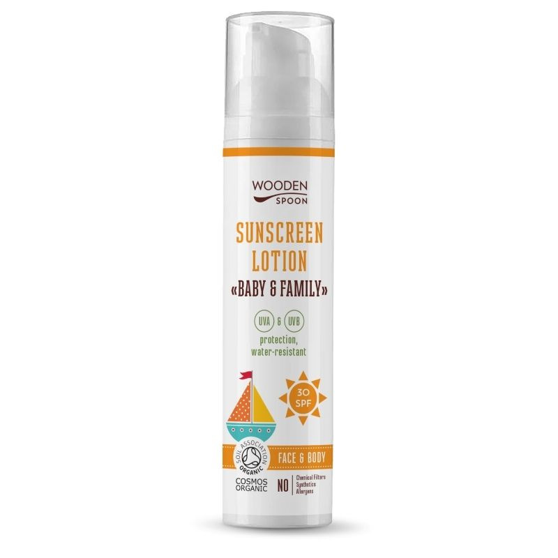 A Wooden Spoon 30-as faktorszámú bio naptej és testápoló nagyszerű választás az egész család számára, hiszen biztonságos és hatékony védelmet nyújt a napozáshoz, ellenőrzött organikus vajakkal, természetes E-vitaminnal és nem-nano cink-oxiddal.